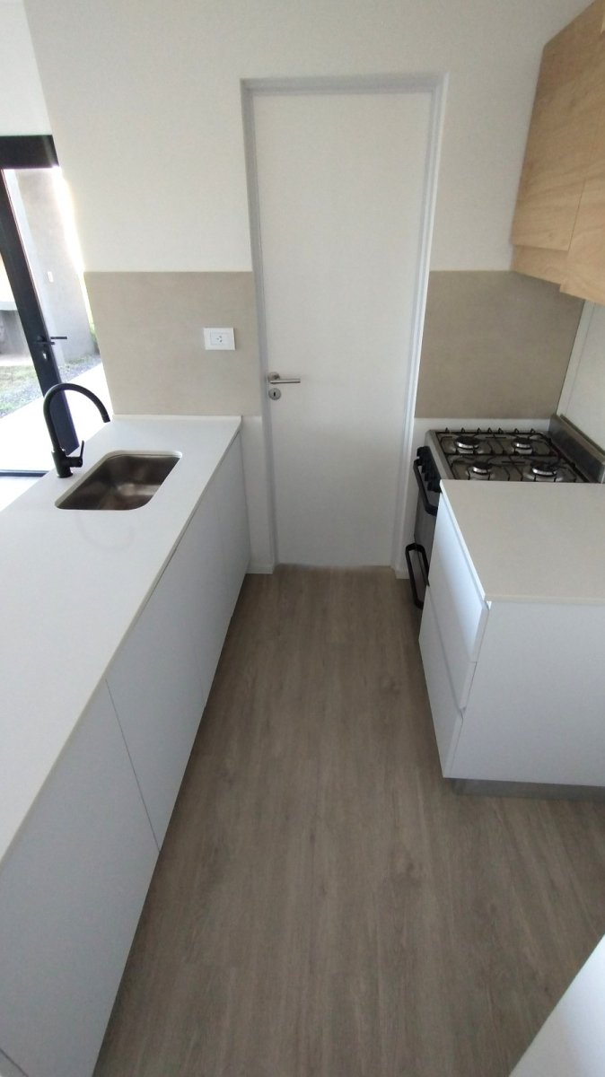 Casa a estrenar sobre terreno de 450m2 en barrio Fincas del Rosedal de Ibarlucea. La misma se desarrolla en planta baja y cuenta con cocina, lavadero / toilette, baño principal, living comedor y dos dormitorios (posibilidad de ampliación para tercer dormitorio con baño en suite proyectada). También cuenta con una amplia galería / cochera con parrillero que puede albergar dos vehículos. Construcción tradicional con instalaciones completas (agua, desagüe cloacal, pluvial, gas y electricidad) Terminación interior yeso Terminación exterior material de frente Amplias aberturas de aluminio línea Modena Baños con equipamiento completo. Sanitarios marca Roca Cocina con equipamiento completo y muebles de melamina. Mesadas Silestone. Piletas marca Johnson Dormitorios con interiores y frentes de placard corredizos con hojas espejadas Pisos símil madera sistema click Parrillero Artefactos de iluminación exteriores colocados Cochera Amplio jardín 80m2 construidos (53,5m2 cubiertos – 26,5m2 semicubiertos) Opcional construcción de pileta